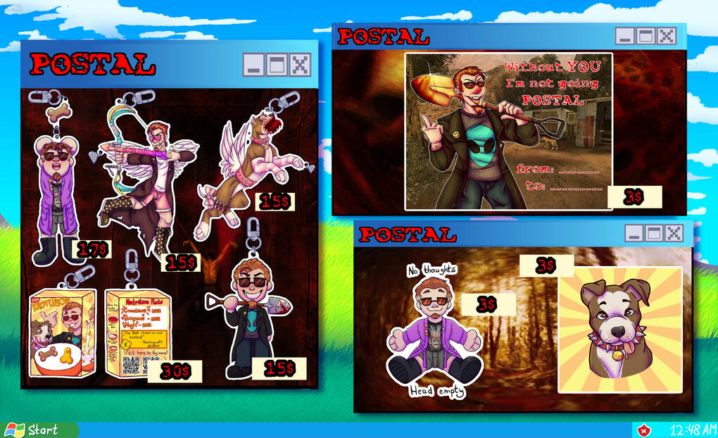 Postal Merch~- Keychains, shaker charm, stickers and postcard~