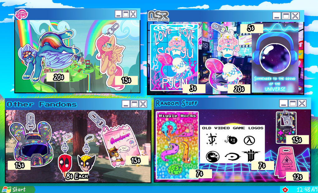 - Other Fandoms: Doomguy keychain, small Deadpool and Volverine ice cream phone keychains and soft Mouthwashing Sweetener keychain (out of stock)